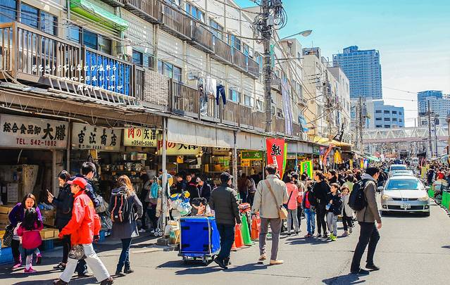 天守阁出来,我们去了通天阁,在通天阁周边有一条小吃街