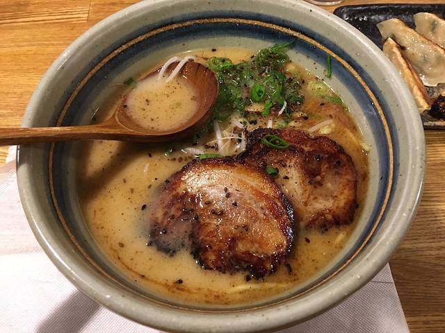 也是一个连锁店,我只能说我这次算是开眼了,我还真没见过在日本有量这么大的拉面…我还点了个大份的,上面的肉片特别厚,盖了整整一层,别人家的面条一筷子都能挑起来,他家的面条,你要是一筷子只能把肉都撒出来~我在日本这么多天终于算是吃撑了一回竟然还剩下了,MOMO 那份要的是正常的,只是觉得吃到后来实在不想吃那大肉片了,太腻了…
