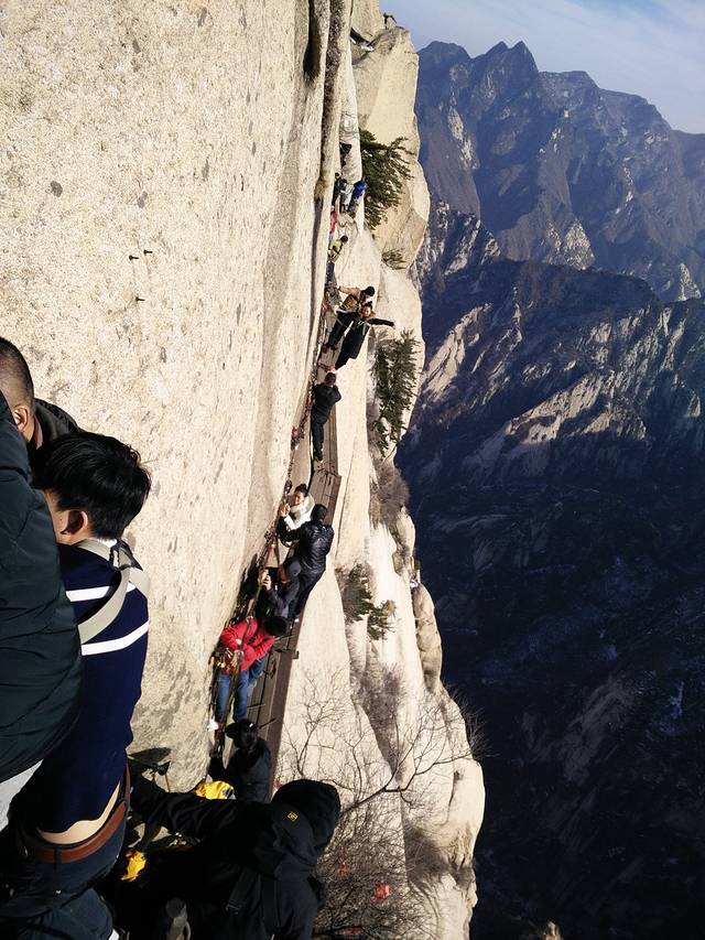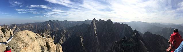 华山自古以来就有“奇险天下第一山”的说法。山脉是深成侵入岩体的花岗岩浑然巨石,南峰海拔2154.9米,是华山最高主峰,也是五岳最高峰。我们走的是西上北下的索道路线,时间还是很紧凑基本上都在赶路(就怕赶不上最晚下山的索道)。