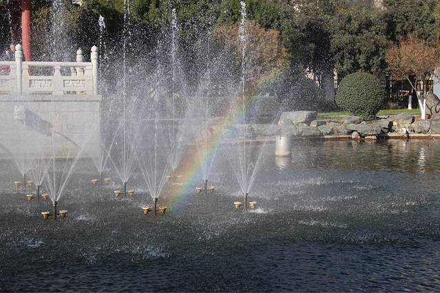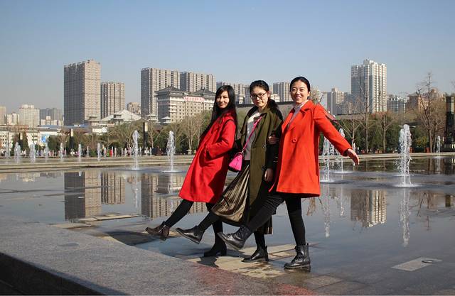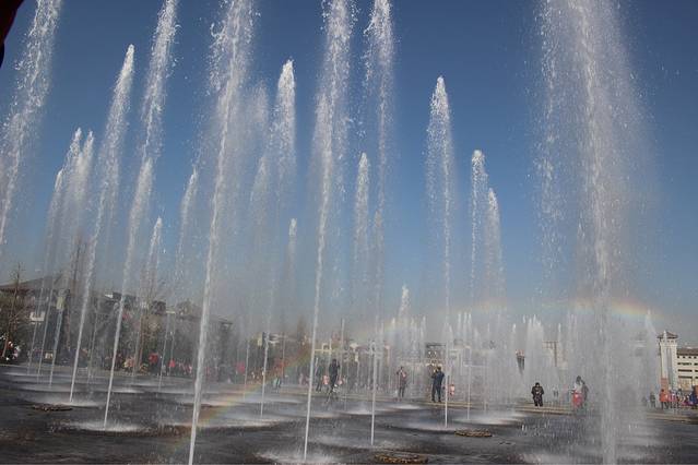 广场上隔成小段小段的台阶,我还在调侃是不是一到夏天会有很多人跑喷泉里面撒欢,事实证明我想多了,因为根本不用到夏天好嘛,开场没五分钟整个广场里面都是人,你们真的不怕冷吗?