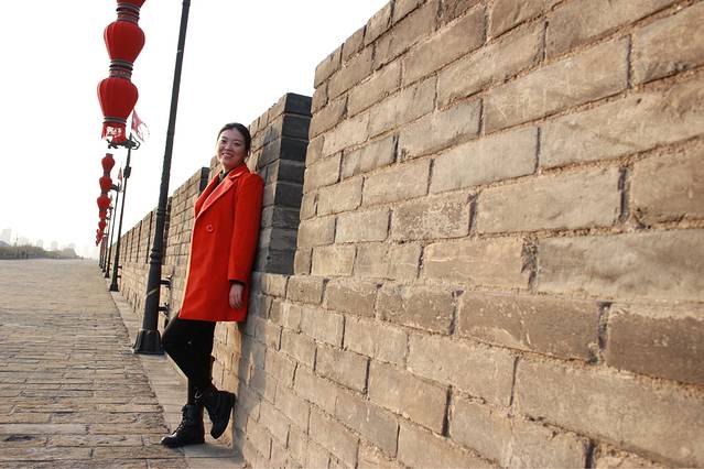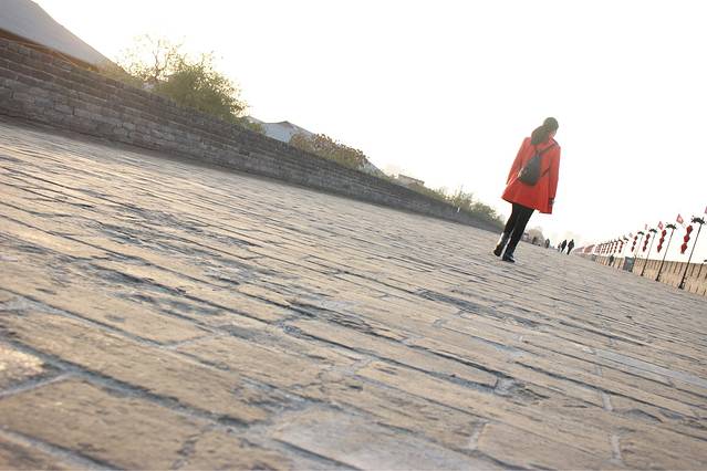 冬天的太阳永远这么舒服,古城墙上行人很少,除了偶尔骑自行车飞驰而过的游客,淡季就是好啊。