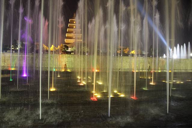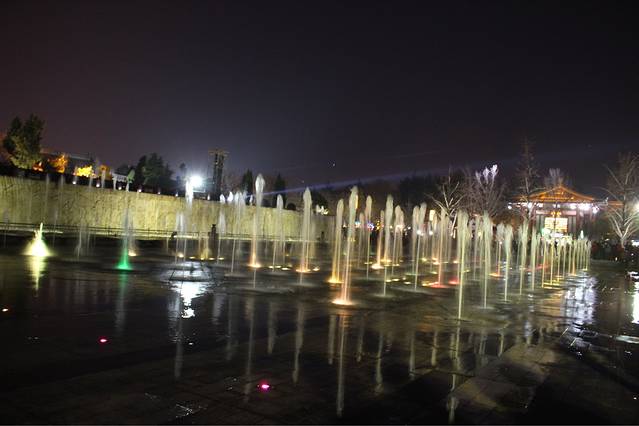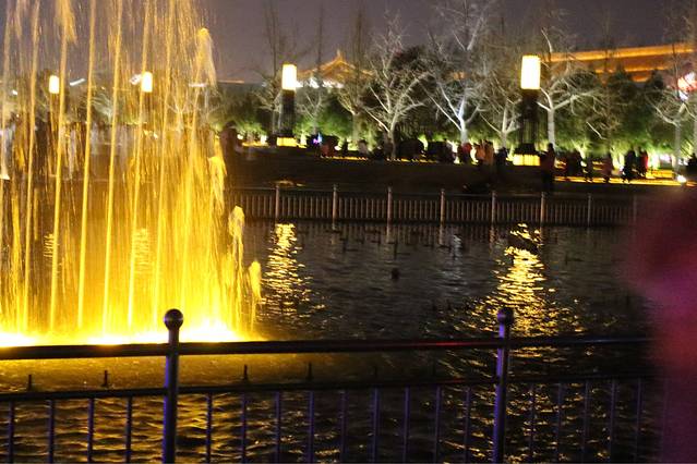 白天看音乐喷泉已经觉得很漂亮了,但还是想知道晚上会是什么效果。So不辞辛劳晚上再战大雁塔。