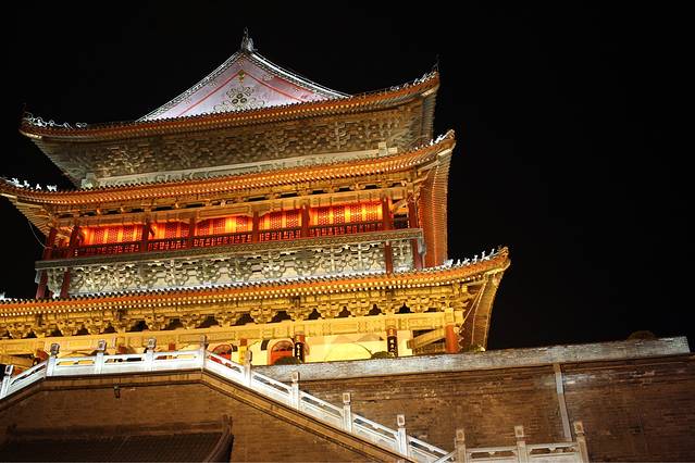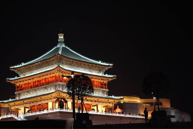 白天路过钟楼,觉得太不起眼了,夜晚灯光亮起来的时候才是它的魅力所在,通身都像一座会发光的水晶,美的如梦如幻。当然作为西安的地标,不能只是长得好看,镇楼之宝是里面的钟,春节联欢晚会新年的钟声就是在这录的(一般人我还不告诉她哦)。