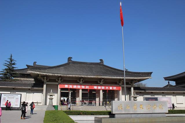 西安博物院的正门,里面没什么看点,有导演带队进去参观,我们仨就屁颠屁颠的跟过去,西安导游靠嘴真不是吹的,就脚下秦一统六国的地图都能掰很久很久......
