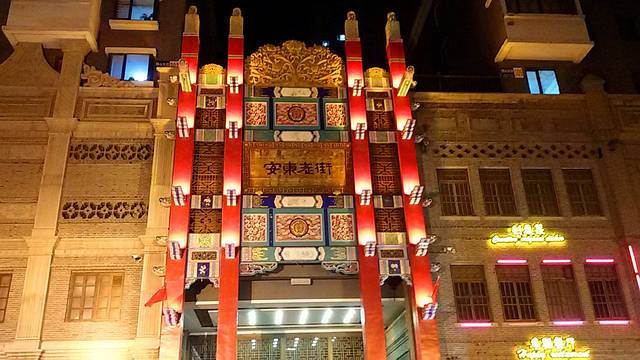 当晚第一站,丹东的安东老街,好吃的很多,清末民初的风格,很好玩,自拍吧!拍照吧!刷吧!