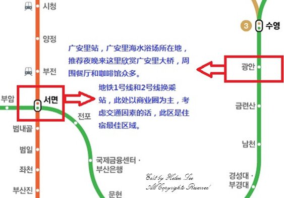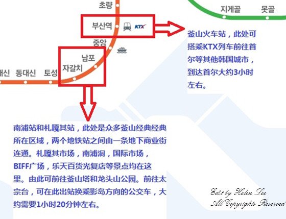 下图是主要釜山景点的地铁线路信息图,仅供参考,有需要的可以私信我要大图。