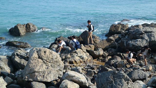 冬柏岛海水清澈,除了本地的海女,也有不少人会趁着天气晴朗在礁石上钓鱼。
