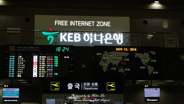 3个多小时的飞行后,到达釜山金海国际机场。