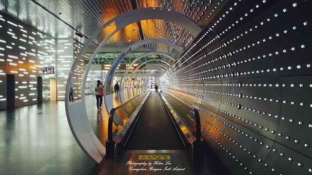 全国首创的“时空隧道”于10月21日面世, “时空隧道”全长200多米,空间面积超过2500平方米,位于航站楼主楼负一层西侧通道,是旅客下飞机通往地铁的必经之路。LED灯装饰的隧道,有一种时空穿越的幻觉。