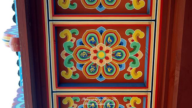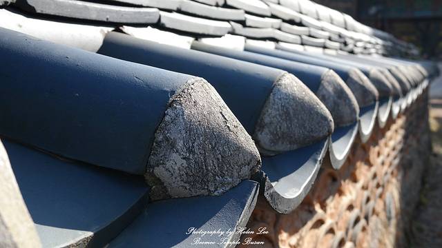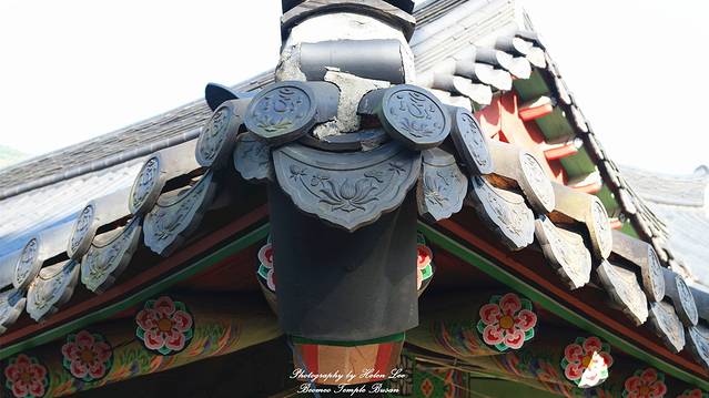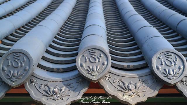作为一座佛寺,梵鱼寺的在建筑上将佛教元素融汇到建筑中,瓦片上的莲花就是一种。