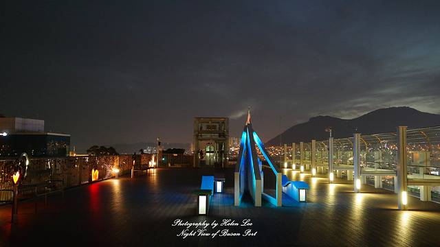 为什么会选择去乐天百货看夜景?原本我的计划是去龙头山公园的釜山塔看夜景的,不过从南浦到釜山塔需要一段路程,而小伙伴表示已经走到脚断,因此我将行程改成了乐天百货。釜山的乐天百货在11楼设立了观景台,由于乐天百货临近釜山港,从这里不仅可以看到釜山港夜景,也能看到龙头山公园的釜山塔。