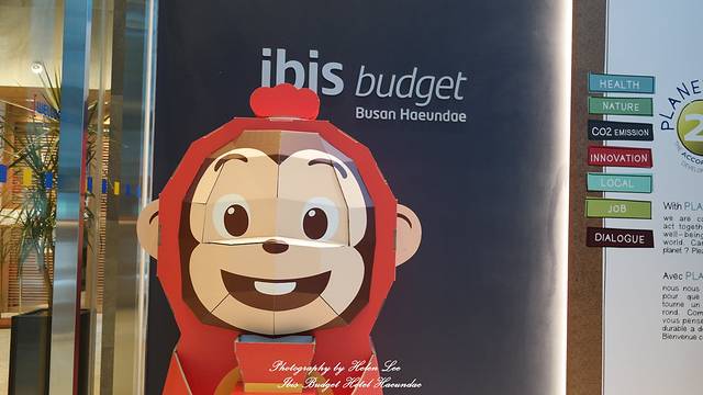 不过海云台有两个IBIS酒店,还有一家叫做Ibis Ambassador Busan Haeundae。其实两家的名字只是相差了一个BUDGET,但是因为这家酒店的位置比较显眼,从地铁站出来一直走就会在远处看到一栋红色的IBIS大楼,而我们住的酒店是一个蓝色的枕头标志所以这两家酒店非常容易认错。