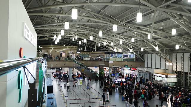 金海机场的航站楼分为国内线和国际线,从国际线到国内线的中间是一段马路,步行10分钟就可以到达航站楼,在这里还可以看到飞机起降的瞬间。