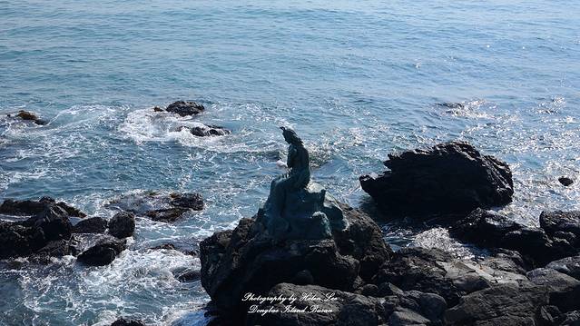 冬柏岛的人鱼雕像,关于这座雕像有一个凄美的传说,从前那烂陀人鱼国的黄玉公主嫁给了海云台龙宫的恩惠王。公主思念故乡,每到初十五月圆夜晚的时候便到海边,看着黄玉中显现的那烂陀故乡,来排解思乡的情愁。