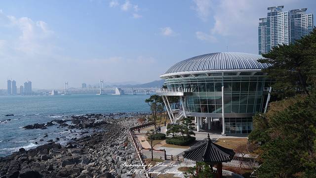 到达APEC世峰楼,这座依山而建的建筑物,外观吸纳了韩式传统亭子的元素。据说可抗强台风、地震和海啸,并拥有防弹等高科技安保设施,这里是2005年APEC会议的举办地。