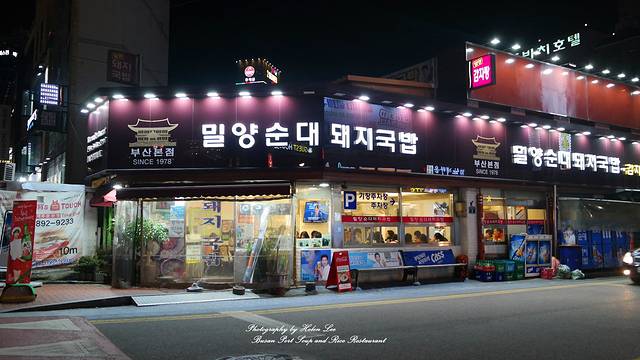 特别推荐一家位于海云台的猪肉汤饭店,店名直译为밀양순대 돼지국빕,“密阳米肠猪肉汤饭”。始建于1978年,这家店专注于制作猪肉汤饭,最受欢迎的就是这里的猪肉汤饭和王米肠猪肉汤饭,7000韩币一份。特别适合在秋冬天气来一份,温暖身体,补充能量,即使是不在饭点的时候,当其他饭店无人光顾时,这里却仍有不少人光顾,大部分都是韩国本地人,可见他家的实力。