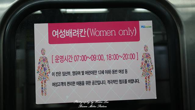 釜山地铁1号线从今年6月增设女性车厢,保护女性的权益。