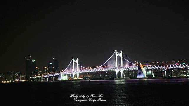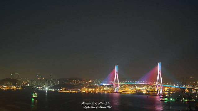 釜山港大桥在夜色中不断通过灯光变换颜色,颜值其实不输给广安里大桥。