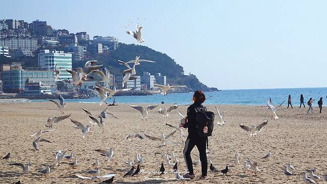 海云台的秋日,调戏海鸥正合适。