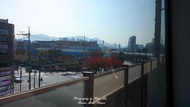 早安釜山。轻轨的最前面的车厢是一片透明的玻璃,在这里可以欣赏风景。