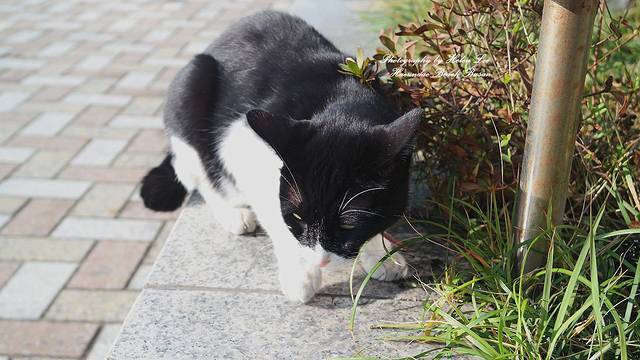 路边的一只小猫,可能是某一户人家的。
