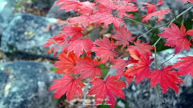 山上大部分的树木还是绿色,虽然有很多落叶,但是真正变全红的枫树不多,能够见到一棵也算是很不错的了。