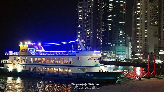 靠在码头边上的TIFFANY 21号,是一艘游船,可以购买船票欣赏釜山夜景。如果没记错的话,《快乐大本营》的釜山特辑有在这边取景拍摄。