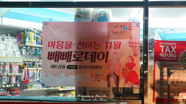 11月11日恰逢韩国的“光棍节”,韩国人将这一天命名为” PEPERO DAY”,뻬뻬로 是韩国的一个零食品牌。这天大街小巷都会卖这个牌子的巧克力棒,在这一天送빼뺴로给好友,单身男女借此向心仪对象表白,已经成为了韩国人的一种时尚,这个节日的热度在韩国已经超过了情人节。