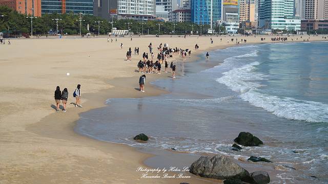 海云台沙滩比一开始热闹了很多,因为是周五,来了很多韩国高中生进行秋游活动。
