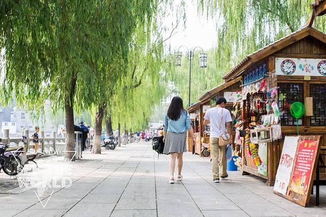游览途中看两岸绿树成荫的自然风光,沿途周末游玩嬉水的一家三口,悠闲钓鱼的老人,手拉手在河边散步的情侣;