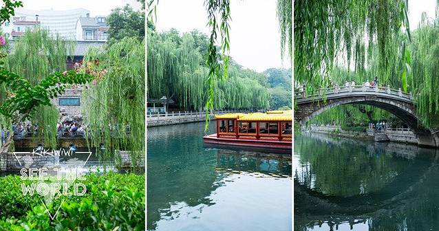 搭乘济南护城河游船游览是不错的体验,这条护城河是国内唯一全由泉水汇聚而成的护城河,最终流入大明湖,全长6.9公里,如同一条玉带环绕整个济南市中心。