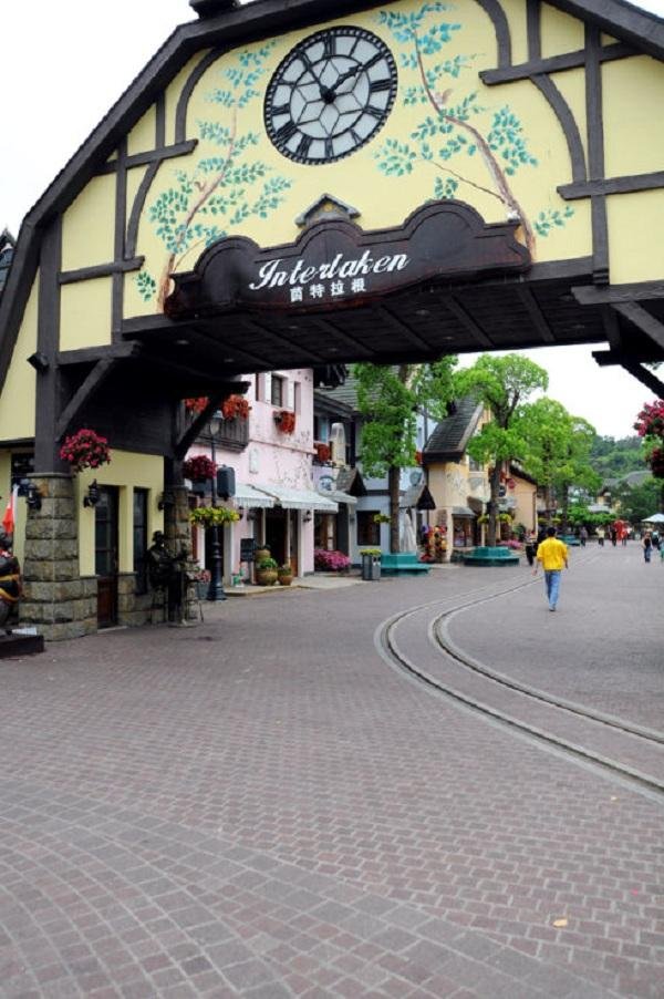 离开瀑布,继续往上,就来到了一个美丽的欧洲小镇:海菲德小镇。华侨城有2个欧式的小镇,一个在大侠谷,一个在茶溪谷。两个小镇都建设得十分欧化,将欧洲情调学得惟妙惟肖,比我见过的所有仿欧式风格的景区都更具欧洲田园风。