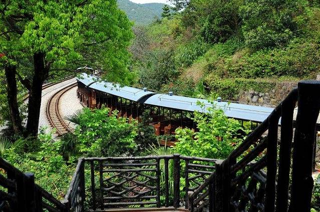 再乘坐森林小火车,到达茶溪谷茵特拉根站。森林小火车是仿古的开放式车厢,很有意思,在两个峡谷之间穿行,需要乘坐整整20分钟,途中经过美丽的峡谷、大华兴寺、欧式别墅群、七彩花田,风光优美,是个很不错的体验。