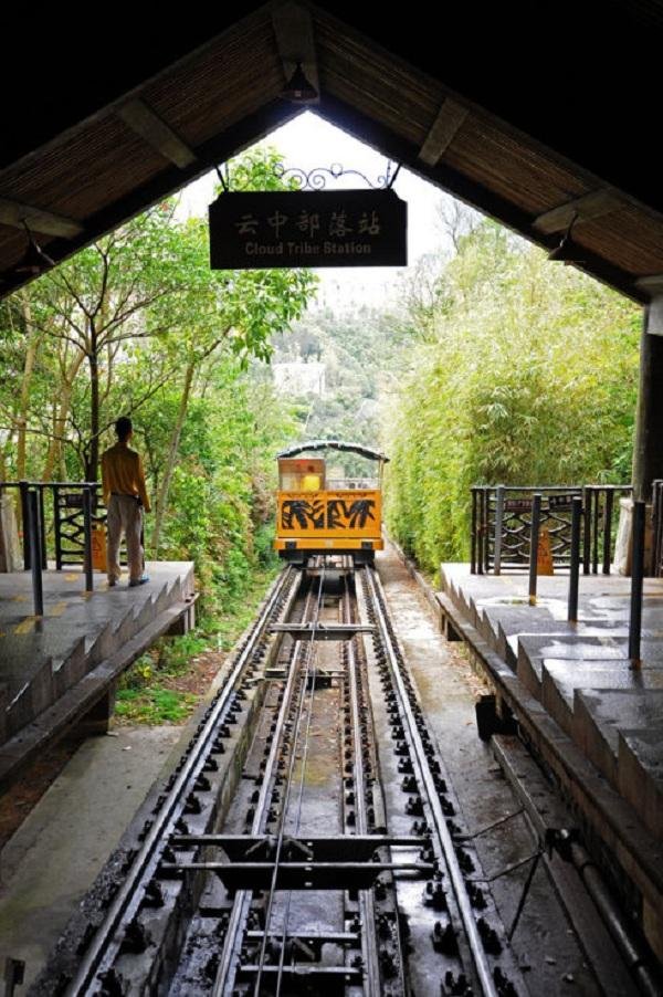 在云中部落下车后,再转乘2分钟的小火车到大拐弯站。