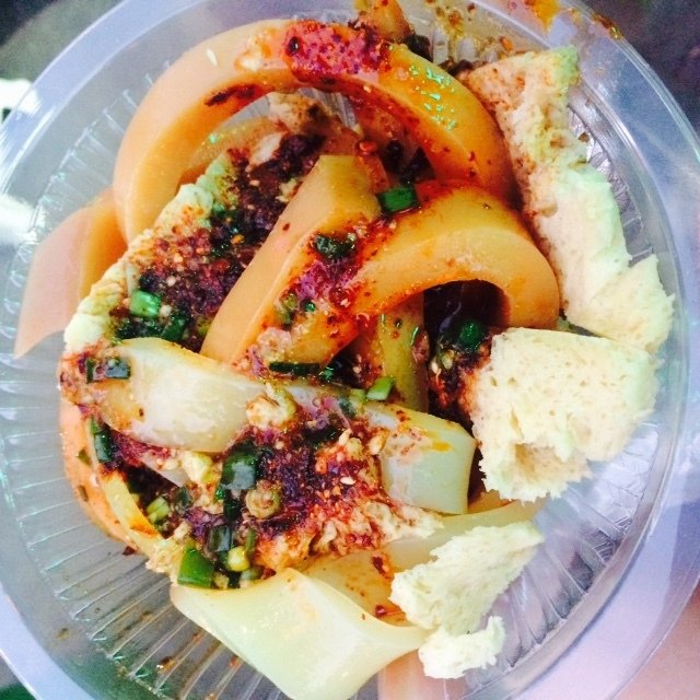 口感很奇特,和凉皮不一样,很好吃的但真心有点辣!