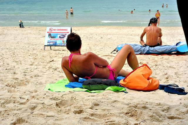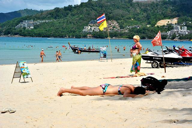 普吉的太阳不是毒是太毒了,穿着人字拖在海边逛逛,基本一直躲在树荫下,晚上脚已经开始痒痒,仔细一看居然红了。通行一人学老外晒了半个小时,全身痒痒了!以至于后几天几乎躲着太阳!沙滩上有好多美女啊!
