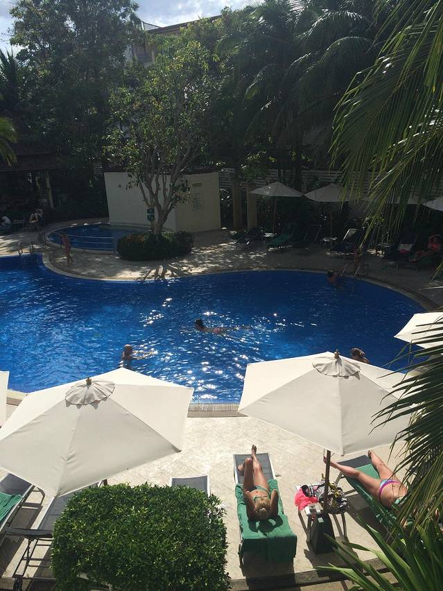 酒店楼下的游泳池。这里住的多数是老外,有的老外基本不出酒店,整天晒太阳,晚上逛酒吧什么的。