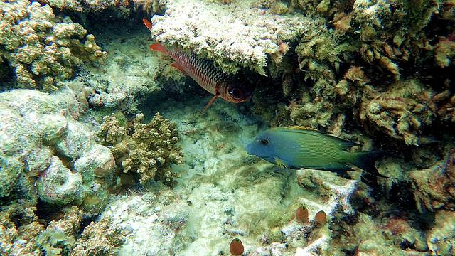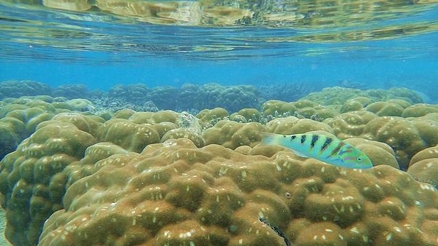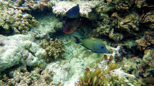 早起便穿好水母衣救生衣,拉着杰哥又下水了,沙屋前的珊瑚虽然会远一点,但基于这几天的经验,这点距离已经完全可以hold了! 不过不会游泳毕竟不太自如,有杰哥在身旁保护着,才比较安心。这次下午运气比较好,看到了好多没见过的鱼,有点拍下来有的来不及拍,后来有点我手忙脚乱,索性就不拍了。差不多一个小时,觉得有些累就上岸冲澡准备吃早饭了!
