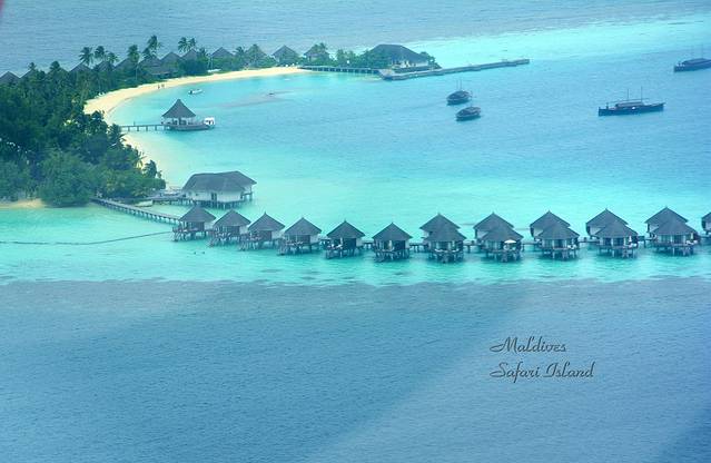 人生第一次坐水上飞机,萨芙莉岛相对来说是离马累比较近的岛屿,水飞只需要半小时,原本以为那种小飞机会很颠簸,一直在担心会不会晕机,但切身感受下来发现一点感觉都没有,也可能是因为刚坐过异常颠簸的大飞机的缘故吧! 水飞并不高,一路过去可以看到一个个小岛坐落在海面上,心中期待着萨芙莉岛呈现在眼前的样子,就觉得时间过得很快,萨芙莉岛也越来越清晰。