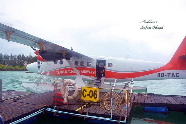 飞机终于安全着陆在马累,走出机场大楼就立马去买电话卡,很正规的电信运营商,买卡需要登机护照信息等等,所以每个人起码5分钟的样子,第一次排队前面两三个人,排到我的时候营业员美女跟我说找不开100刀的大钞,我也是囧哭了,然后又跑去买东西换零钱,零钱换好回来后,排队的人更多了,等到办完已经过了将近一个小时,之后又快速去买香蕉船套装。结果就在从防晒霜商店出来的时候,被一个小黑拦住了,问我们是不是某某(我和杰哥的名字),我们很震惊,然后说是,然后小黑就说了一堆夹杂口音的英语,我就听到了一句:最后一班水上飞机赶不上了! 我一下子就懵了!如果赶不上,不能上岛,那怎么办呢,机酒套餐的时间都是提前订好的,上不了岛,那不是就少了一天宝贵的在岛上的时间啊! 感觉一下子所有好心情都没有了。 我们跟着他赶去登机,我已经快要哭出来了,杰哥比较淡定,开始问他还有没有什么办法,到了登记柜台后,他打了个电话,然后跟我们说,还有最后五分钟,让我们速度乘短驳车赶过去! 真是谢天谢地,幸好在最后时刻赶上了。 后来想想,先去登记,让等在那边的人知道我已经到了,再去买东西,肯定会会比我们这样更加保险,希望小伙伴们引以为戒!