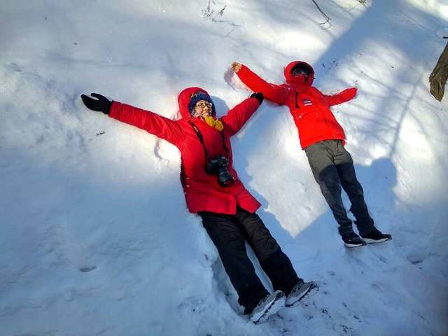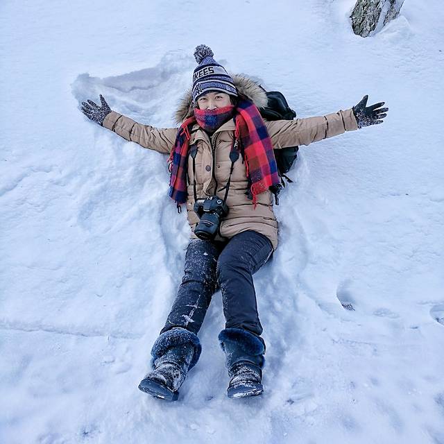 见到雪就兴奋的小伙伴,爬山过程中各种撒欢,朋友们千万不要学!经验之谈:往雪堆里躺之前请一定要确认雪堆下是雪还是岩石?