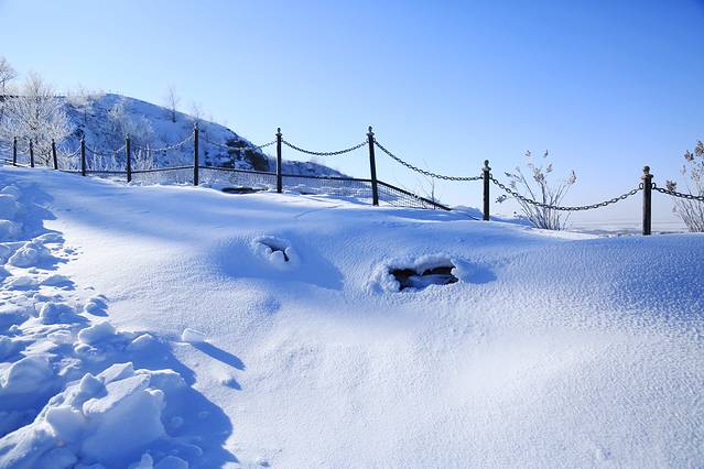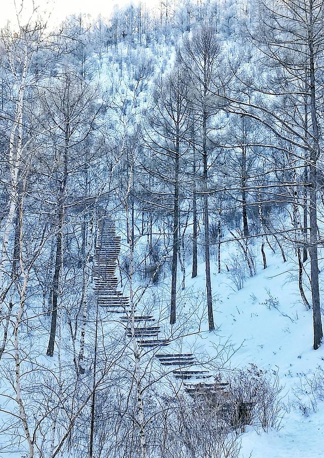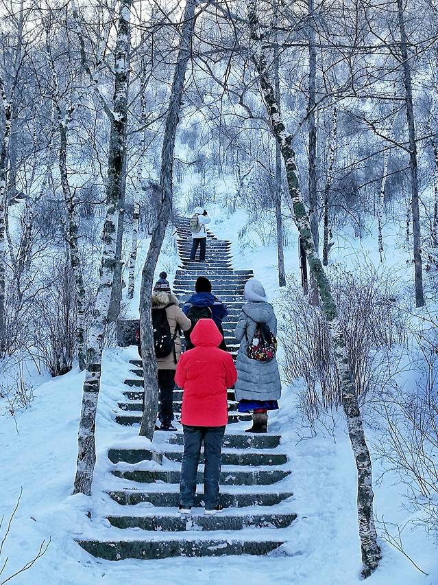 黑龙山并不高,海拔515.9米,高出地面165.9米。虽然冬季门票免费,但仍有人每天都清扫爬山道,所以爬起来并不费劲。