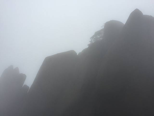 一路上还是遇到许多令人赞叹的景点,连石头都点赞了,我们也并不会因为大雾而吝惜自己的赞美,奇松、怪石,一路上遇到不少,就且把雾当做云海吧,就当神仙带我们逛仙境吧!