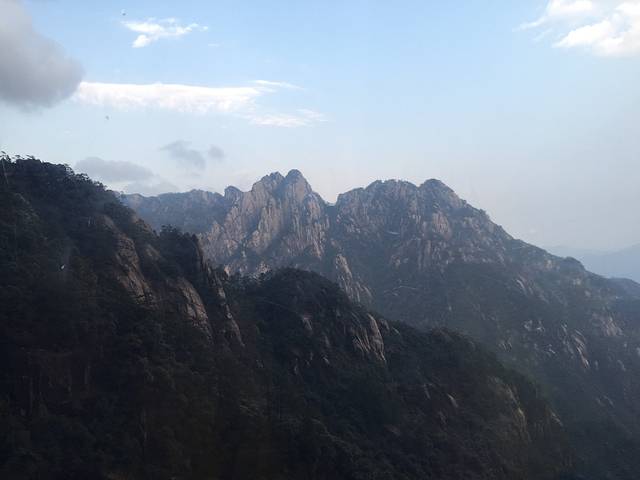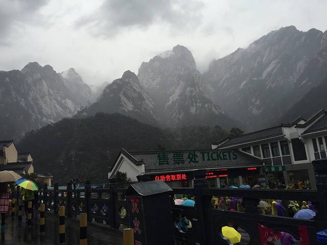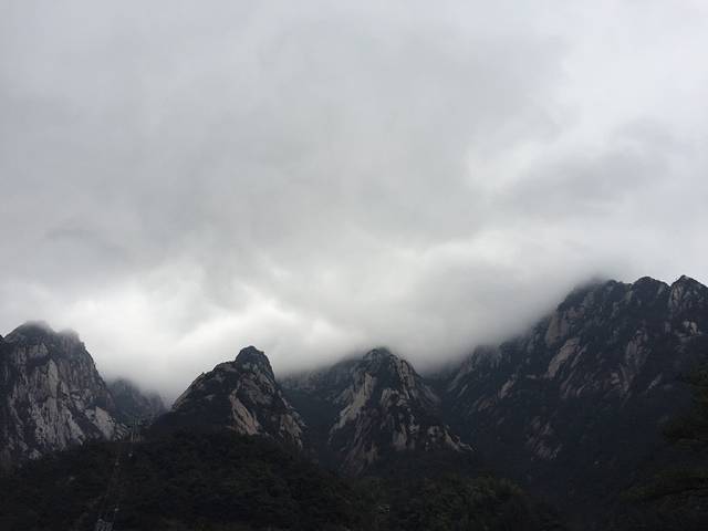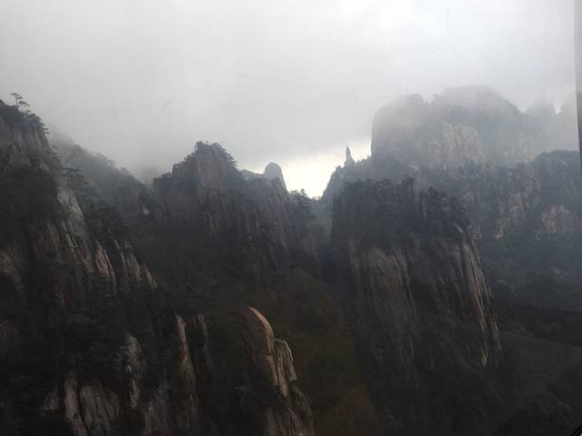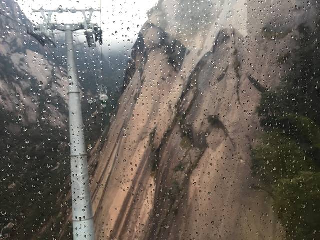 即使是下雨的黄山,也是宾客纷至,在听闻坐上行索道要排两个多小时的队,我们决定自己爬上去,结果排了半天发现站错了队伍,进退两难,又是问景区人员,又是问旁边游客,终于确定可以在入口补票,总算放心了。阴差阳错坐上索道,只能一切冥冥注定,如果我们爬,估计还没到慈光阁就准备下山了吧,坐索道都做了十分钟呢,姐姐怕的不要不要的。