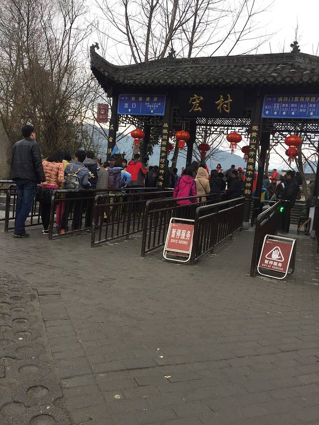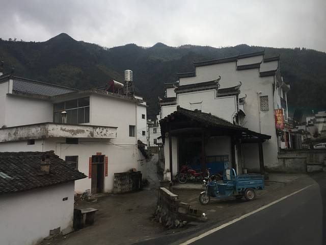 从黄山风景区汤口镇有直达宏村的班车,我们没有赶上10点的班车,坐的是11点的班车,一路上都是大大小小的景点,但都不如宏村有名气,可以从路途的建筑想象宏村的样子,白墙黛瓦在黄山脚下,很安详,一副田园画。