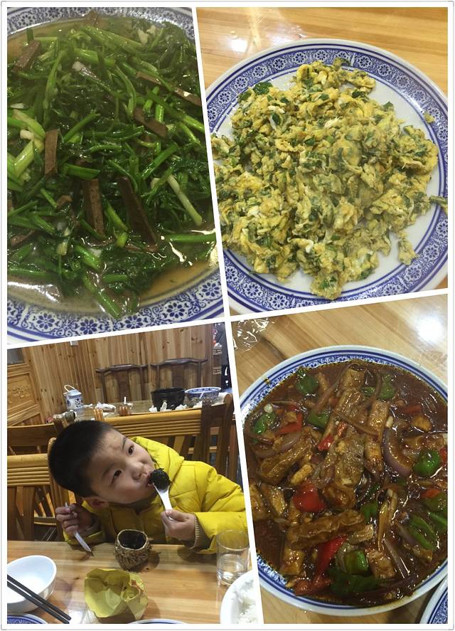 额,随便进了一家人多的,最后才知道网很有名的店在旁边,在这里吃了三个菜,黄山特产毛豆腐、野菜炒鸡蛋和野芹菜豆干,只能说这里的口味太怪,我们吃不惯,给小牛牛买了鸟笼装的乌糍,可以尝一一尝!