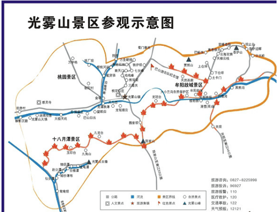 光雾山景区主要由:桃园景区(看看山水最佳去处,红叶偏少)、大坝景区(红叶最好看、知名度最高的区域,必去之地!),以及十八月潭(也是赏红叶去处)。