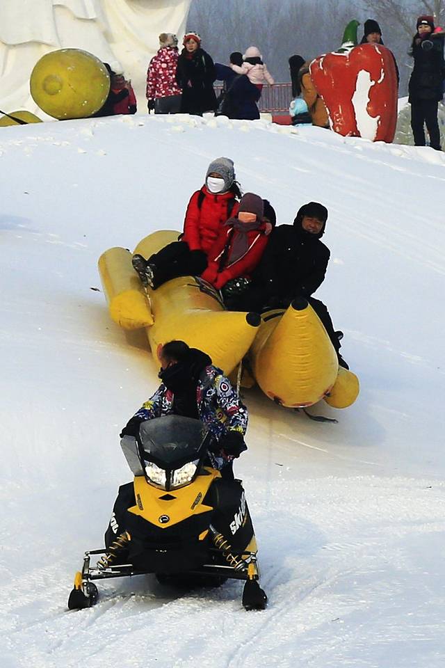 雪地摩托,考虑安全因素,雪地摩托有专人驾驶不能自驾。突然很羡慕雪地摩托的司机,这一天得被多少美女搂腰啊!