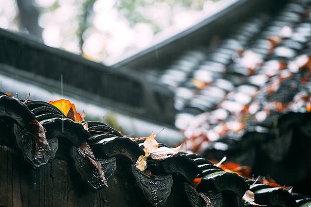 在绿荫树下,我的小伙伴与绿色的环境成为了鲜明的对比反差,犹如新时代来临般勇猛,更显得异常张扬,停在那里,充分发挥了自己的颜值。看着细雨打在房檐下,滴答滴答的雨滴落下,被雨击落的树叶,躺在石砖上,真的是意境十足。