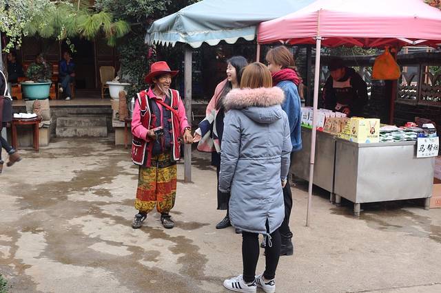 来到茶马古道,我们先去吃饭,由于天气比较冷,饭店的一位爷爷,把我们拉上一起跳纳西族的饭前热身舞。哈哈